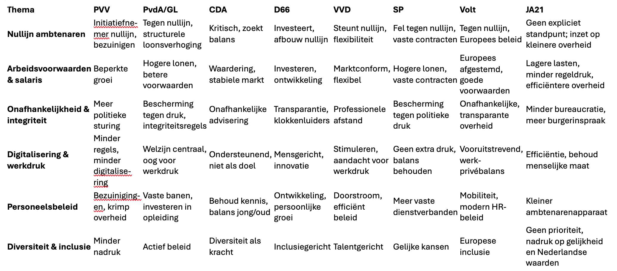 VDNA analyse: politieke partij programma’s en relevante thema’s voor Rijksambtenaren